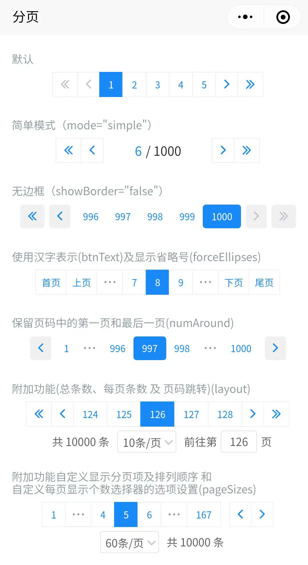 | mode | String | multi | 显示模式,可选值:multi / simple multi:标准模式;simple:简单模式,只显示当前页/总页数 |