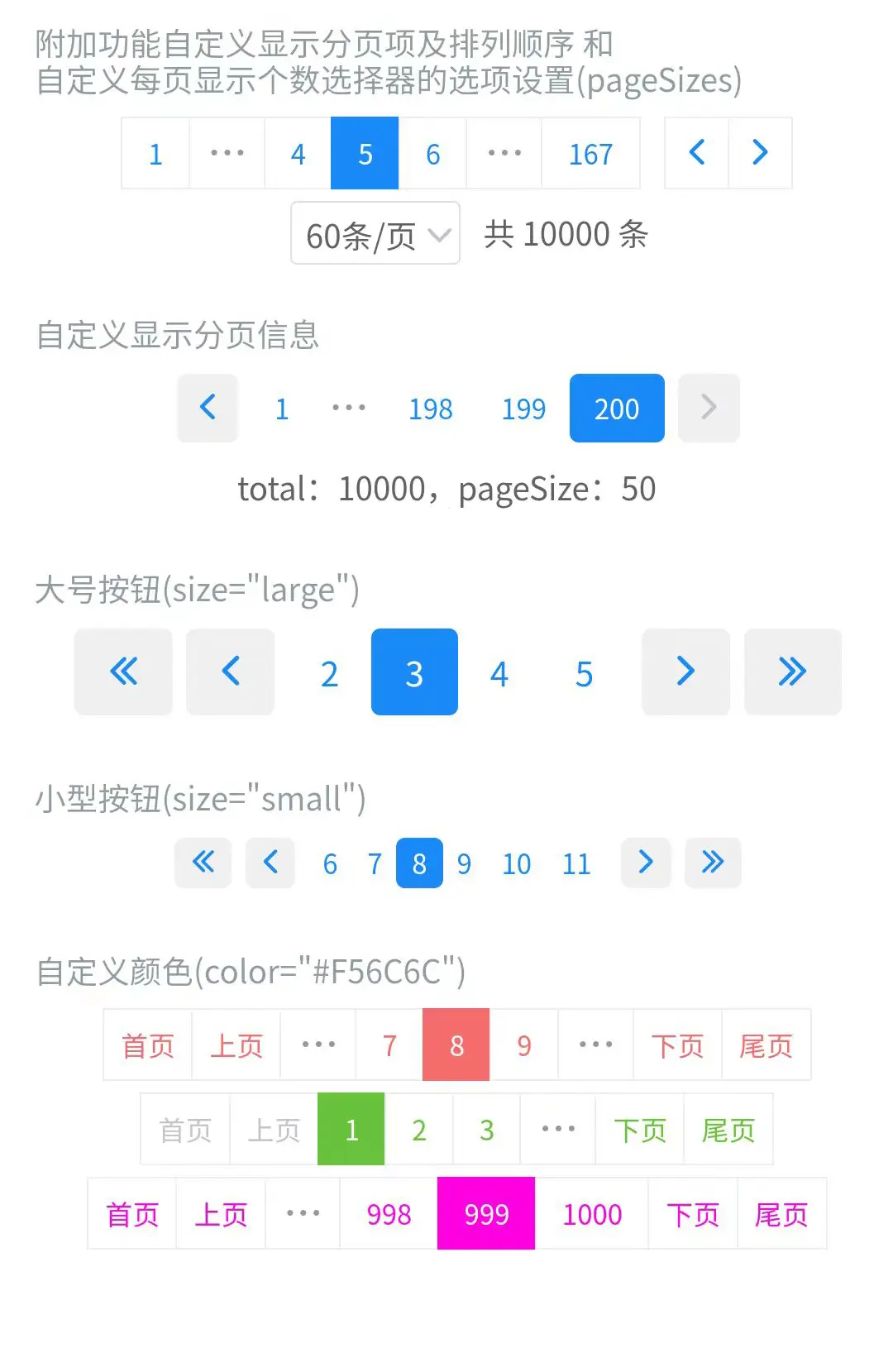 - 可自定义显示分页信息,如总条数,每页条数等;