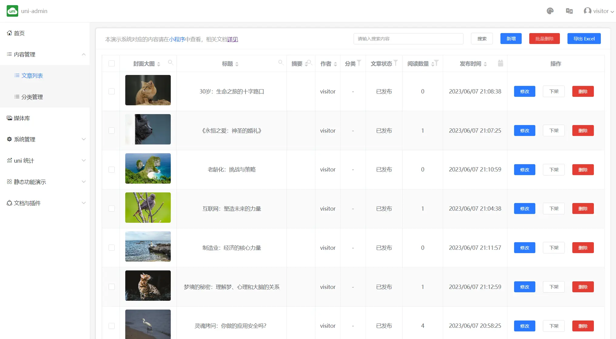 DCloud官方提供了uni-cms内容管理系统,无需下载第三方插件
