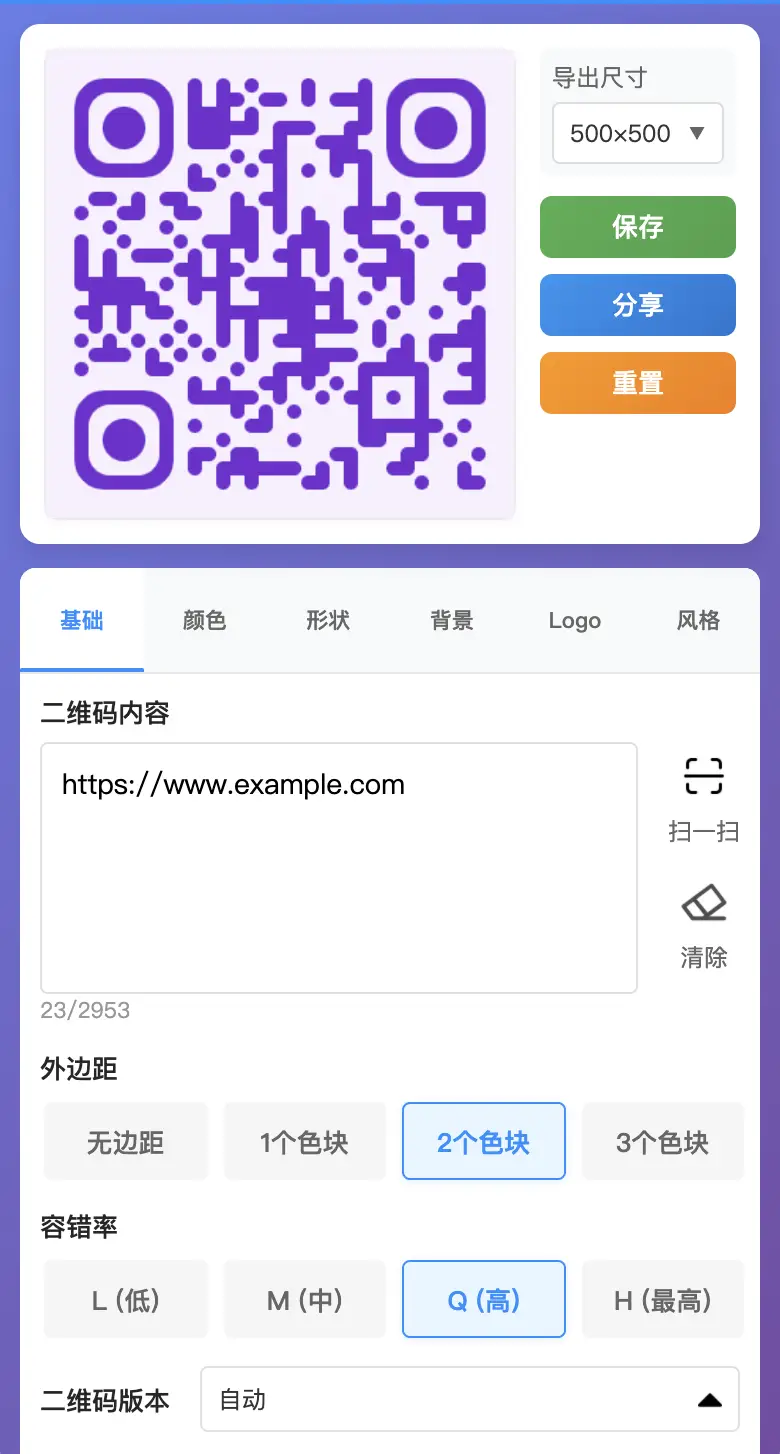 功能强大的二维码生成组件,支持渐变色、Logo、前景图填充、8种码点形状,兼容Vue2/Vue3、小程序和H5