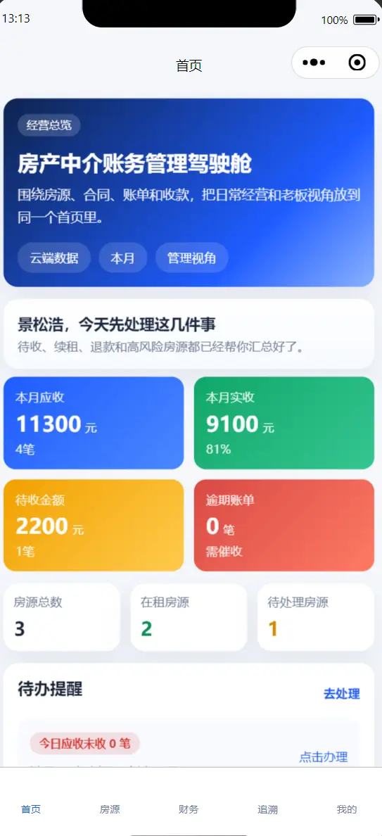 • 房产中介账务管理小程序前端模板