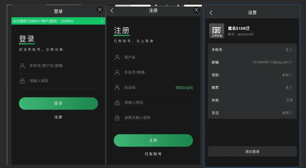 登录、注册、聊天、朋友圈、新闻列表