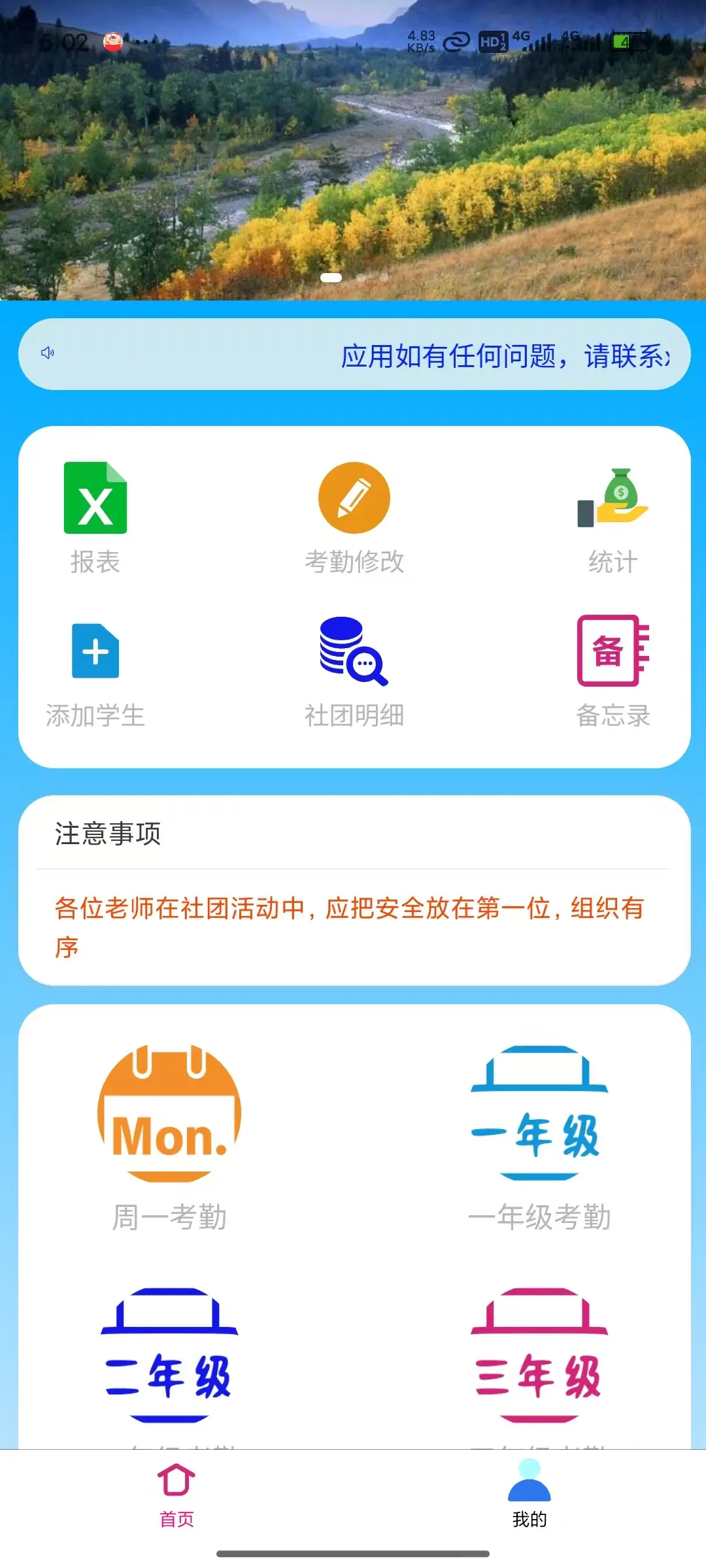 智慧考勤app,可实现每个周学生课后社团活动考勤签到、未到、退团、联系监护人或者班主任,教师个人考勤计费,考勤记录表下载,备忘录等功能。可供学习使用,大神绕路