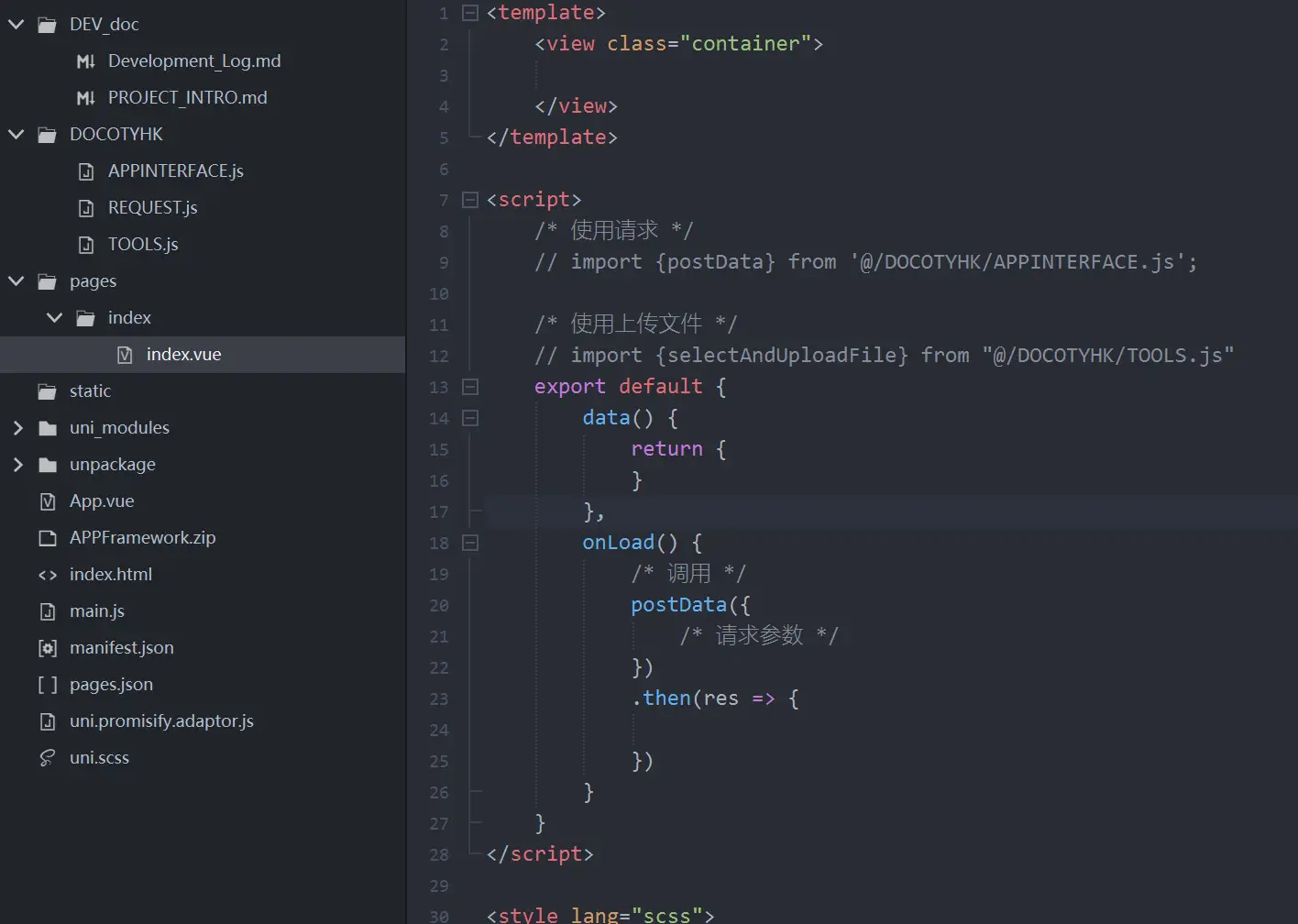 基于uniapp + UV-UI的软件开发项目框架,主要是写好API集中使用、管理,空白页面,下载导入直接开始写页面;后续再出常用组件或者页面,现在知识一个空白页面的框架项目。【上传自用,请勿下载】
