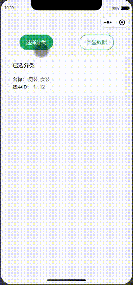 • 树形选择器增强版,支持多选、单选、全选UI、支持数据回显、二级分类