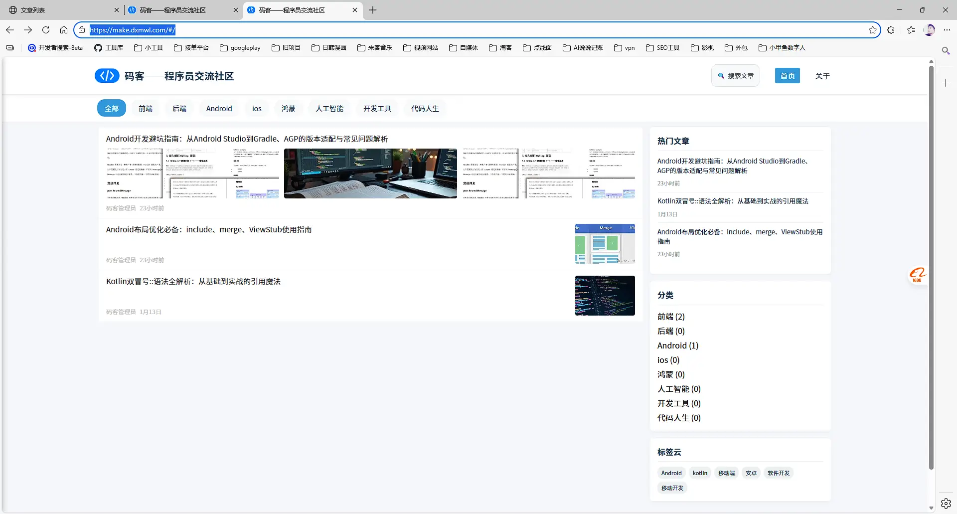 "码客——程序员交流社区"是一个专注于程序员技术交流与学习的平台。该项目作为用户端,提供文章浏览、搜索、分类查看等功能,为开发者提供高质量的技术文章、经验分享和交流机会。