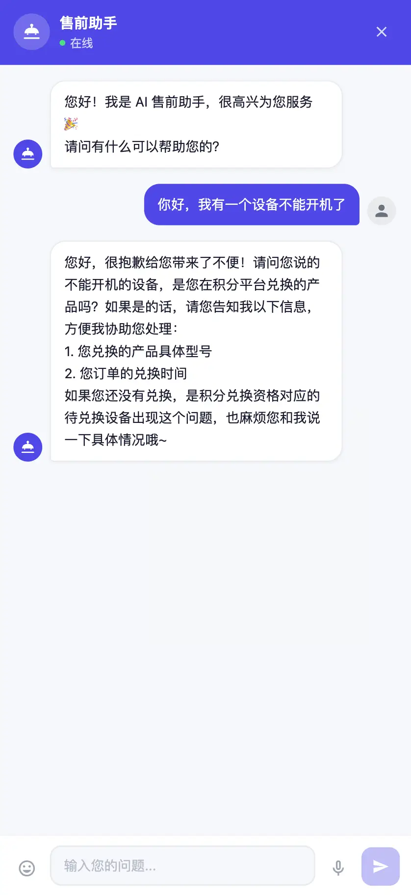 • 企业级智能AI在线7x24客服