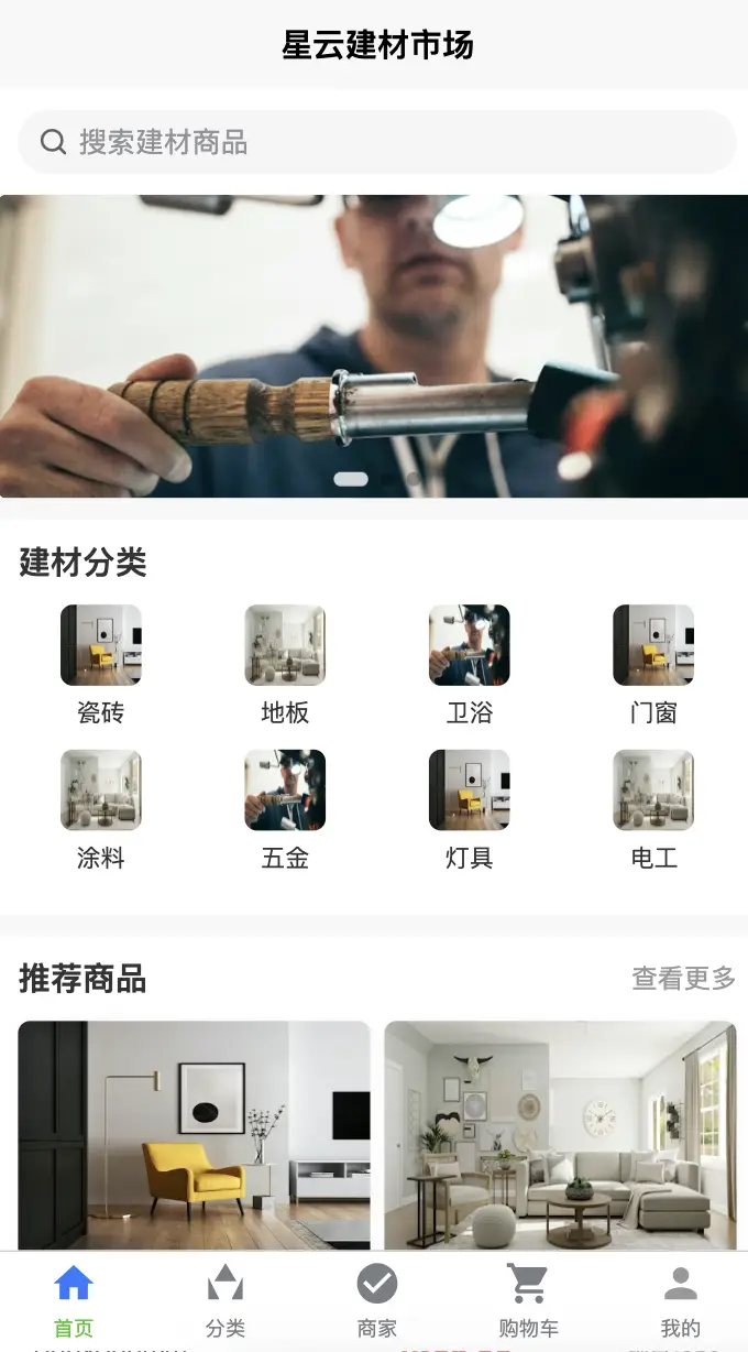 星云建材市场是一个专注于建材行业的B2B2C电商平台,提供从商品浏览、购买到商家入驻、管理的完整功能