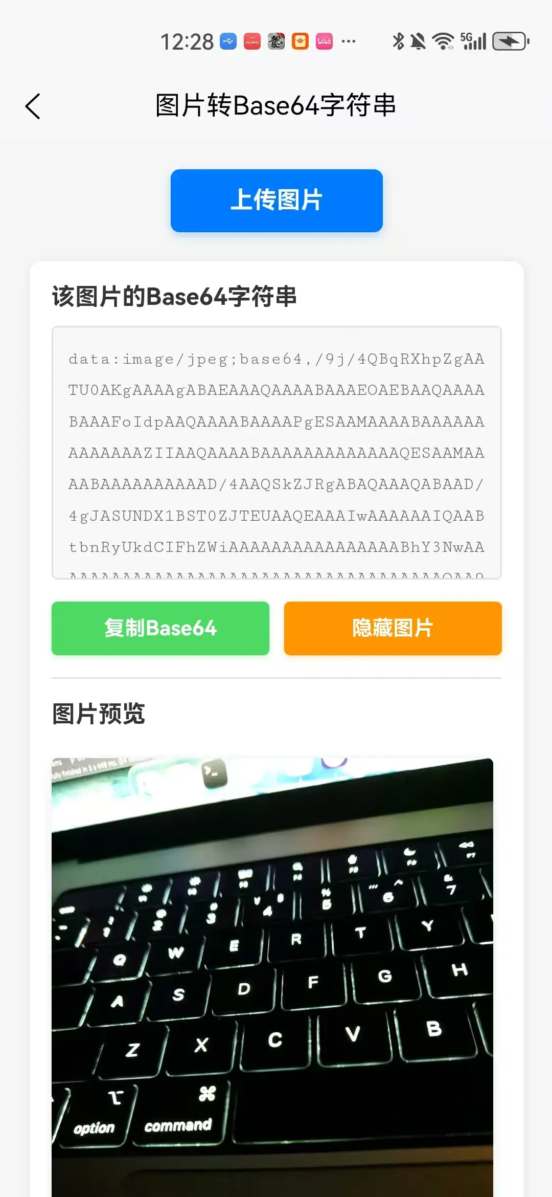 可将图片转为base64字符串,为一些不希望存储文件的场景提供支持