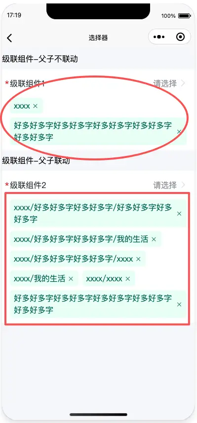 选项内容显示 配合组件xf-fm-multi-select使用 适用于中财uniapp组件库