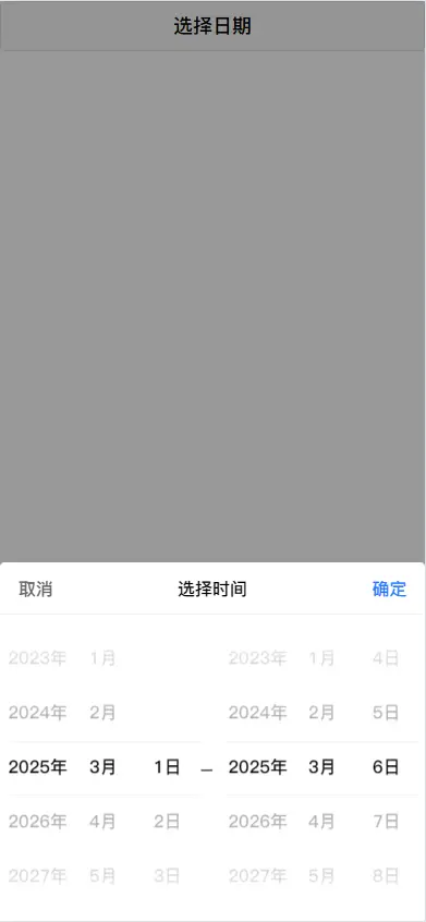 • 选择器-日期区间(支持单时间)