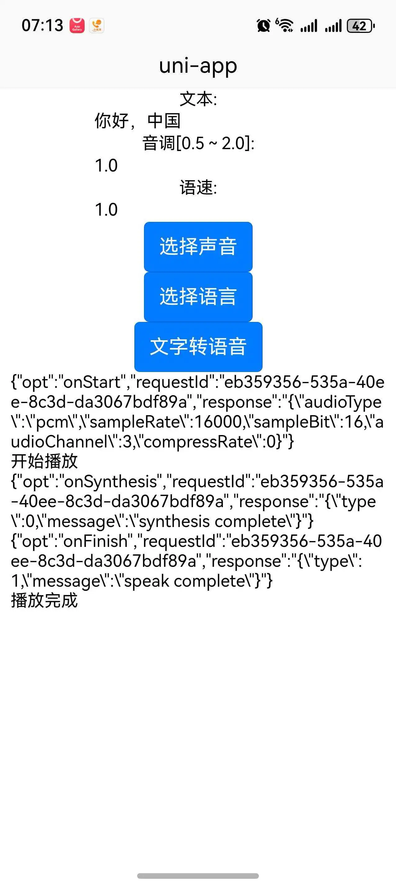 uni_modules TTS 文字转语音 设置语调、语速等 支持安卓苹果鸿蒙