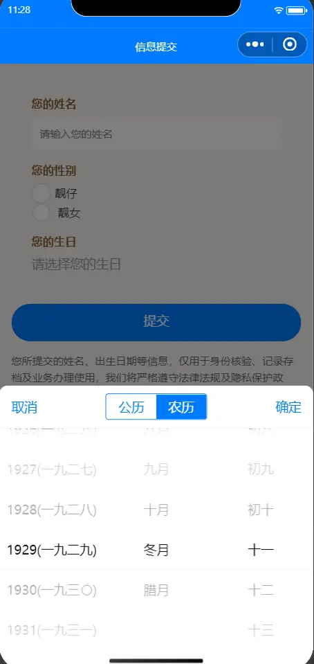 日期选择器 公历农历 uniapp 小程序