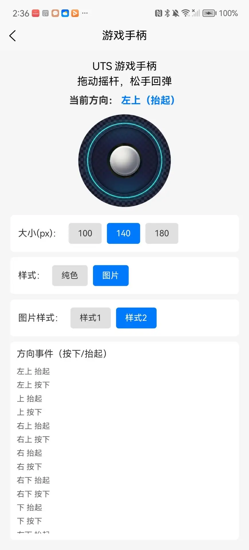 游戏手柄、虚拟摇杆组件(安卓、iOS、鸿蒙;UTS),支持纯色/图片样式与方向事件