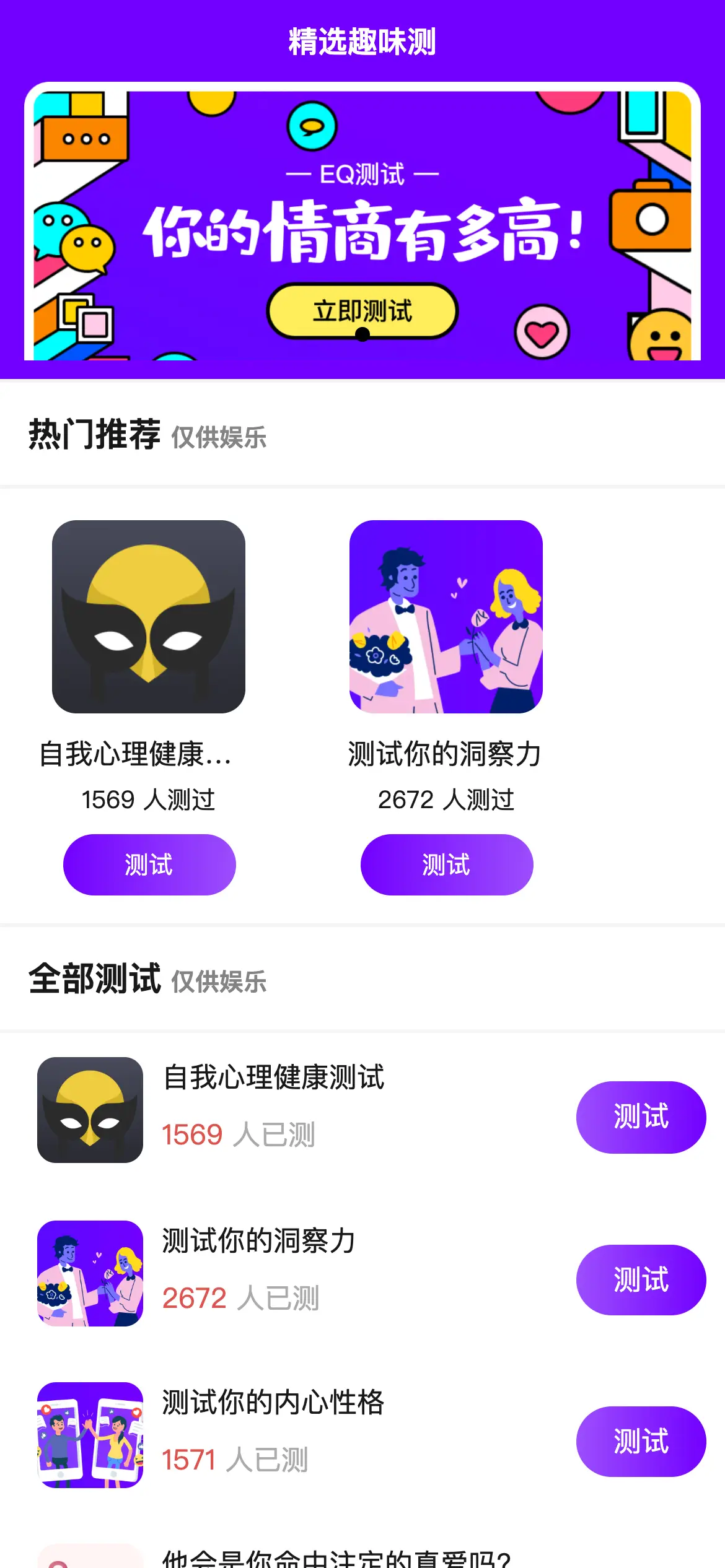 • mbti 最新微信 抖音 趣味测试小程序源码 多种激励广告策略供选择