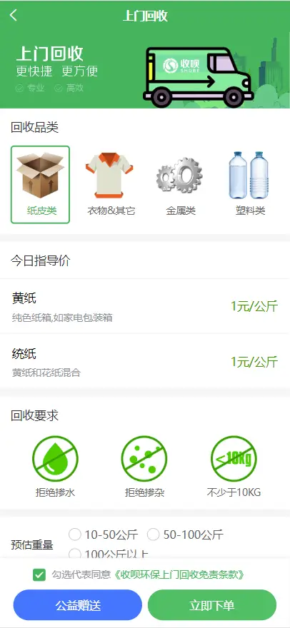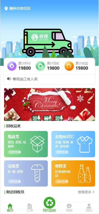 上门垃圾回收小程序是一款基于uni-app、uview 开发的垃圾回收小程序,适合用于垃圾、废品回收等相关行业。