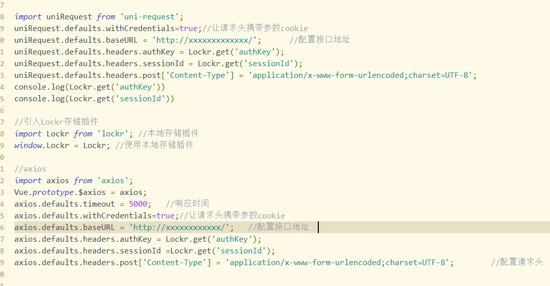 uniRequest.defaults.withCredentials=true;//让请求头携带参数cookie