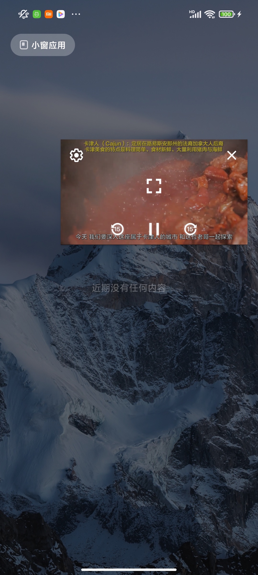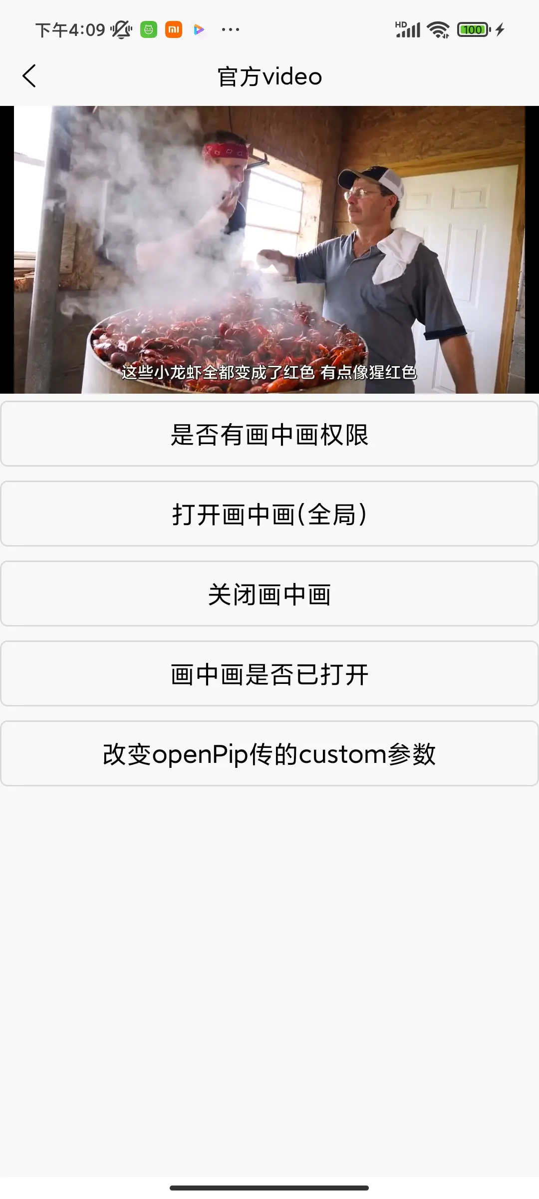 画中画(全局)、里面的播放器为官方的video、支持为第三方播放器无缝添加(进度同步更新)、完全关闭app/清后台都不会消失