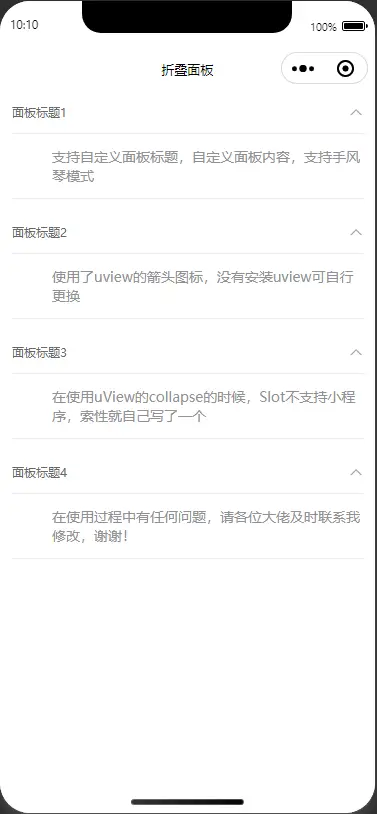 支持自定义面板标题,自定义面板内容,支持手风琴模式,在使用过程中有任何问题,请各位大佬及时联系我修改,谢谢!
