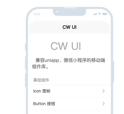 cw-ui是一个兼容uniapp、微信小程序的轻量移动端 Vue 组件库。