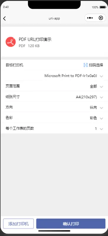 在应用中展示打印交互界面,提供完整的打印参数设置,及打印功能
