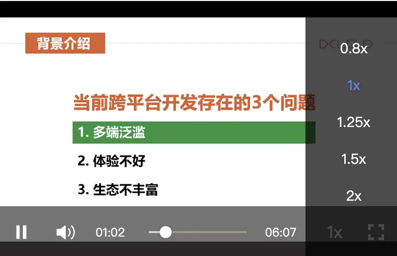 - 控制条会在5秒后过渡隐藏,点击视频区域重新显示
