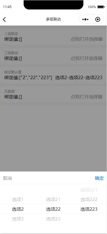 console.log(e.item.map(item => item.label).join('-')) // 多选 选项1-选项11