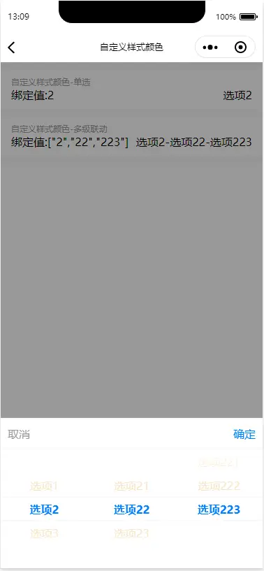 console.log(this.$refs.picker)打印有内容,否则会报错,可在onReady中进行调用。 - 如果动态设置