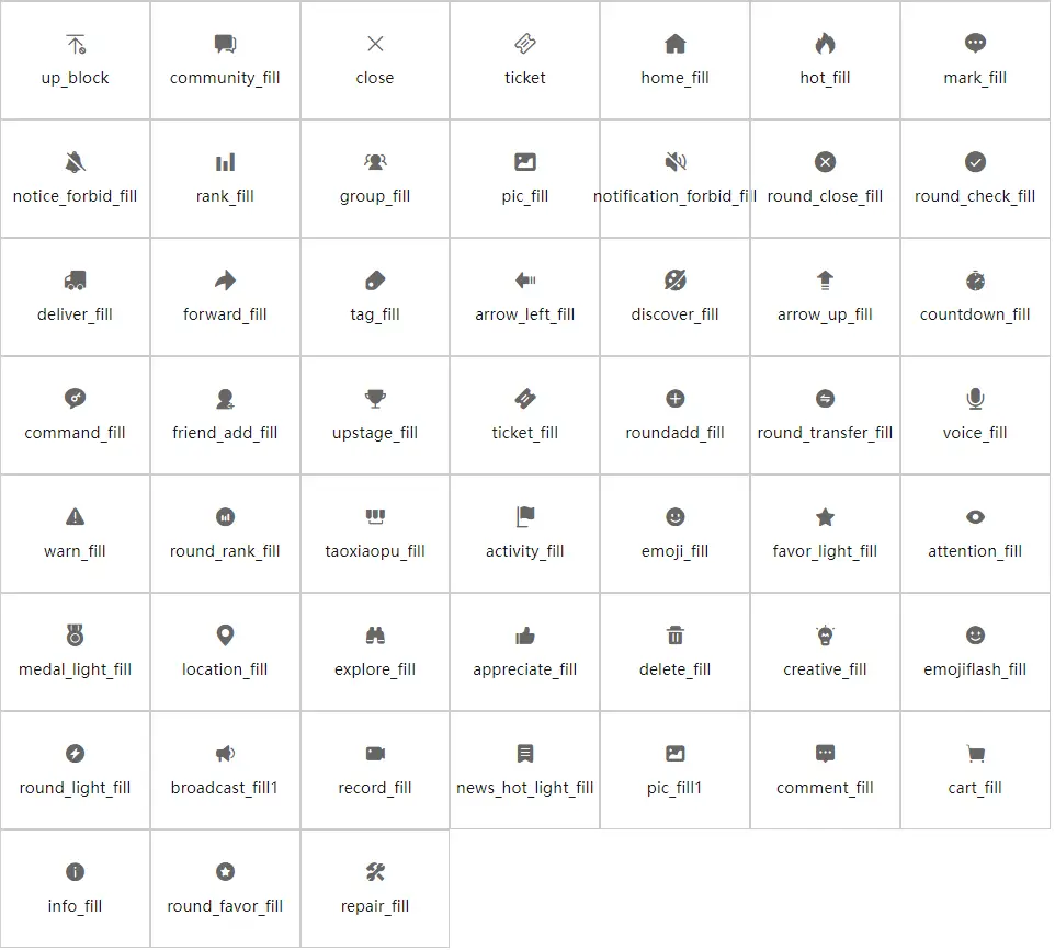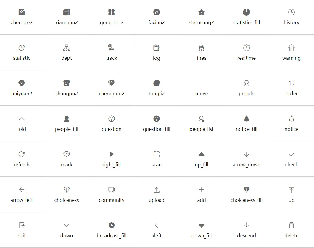| name | string | 图标名称 |