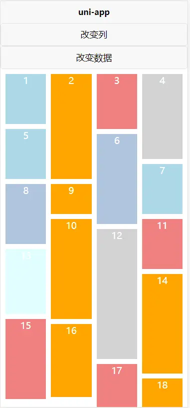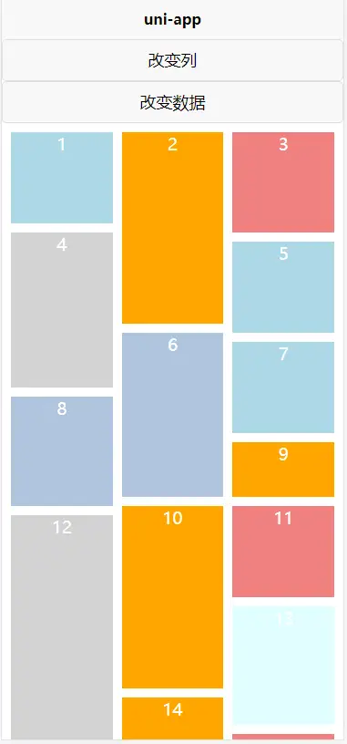 适用APP,H5,微信小程序的真瀑布流。 区别与其他不是根据高度进行分布的伪瀑布流。