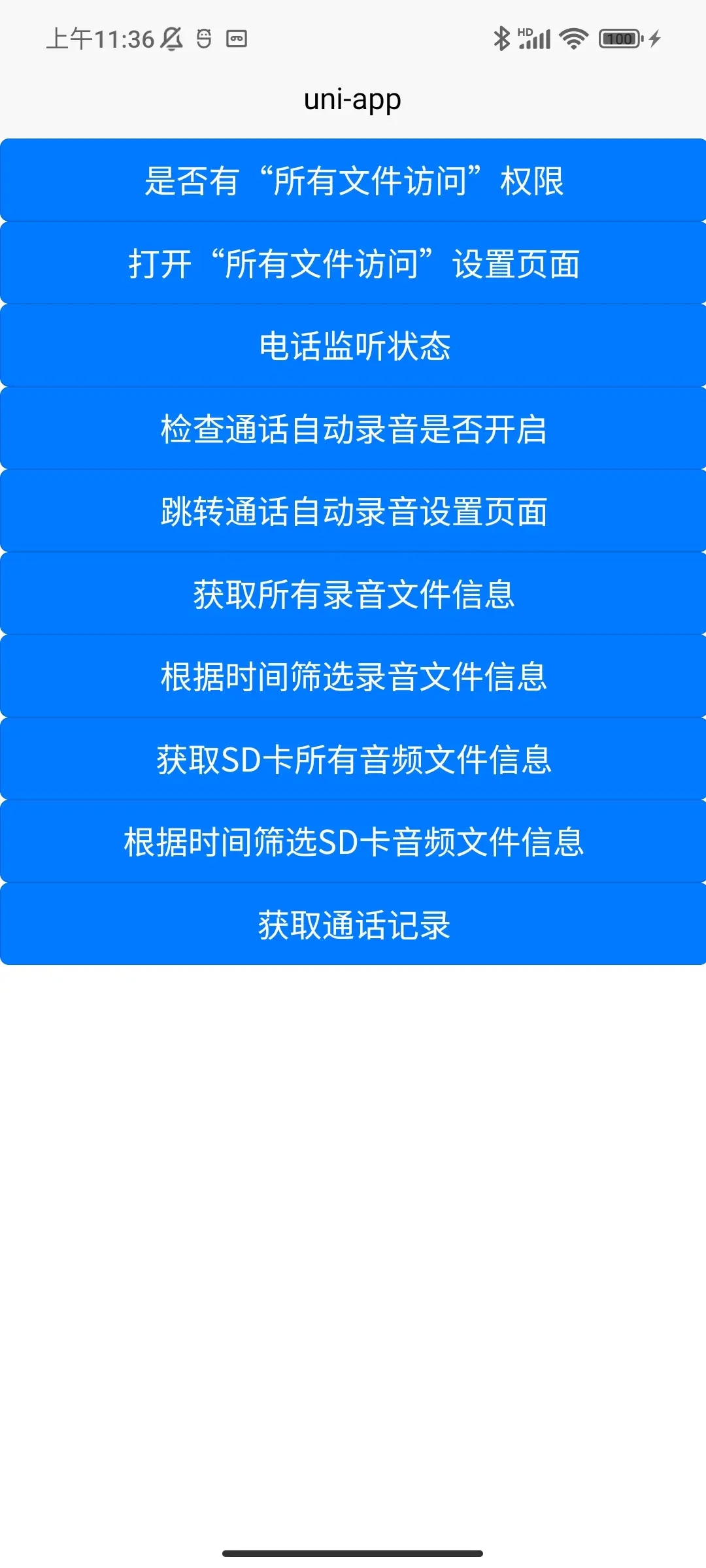 通话状态监听、通话录音文件获取、自带通话自动录音、通话记录获取、录音上传