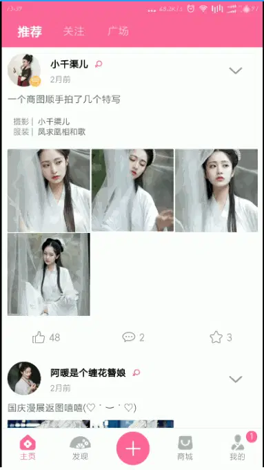 - 动态、关注、发布列表显示