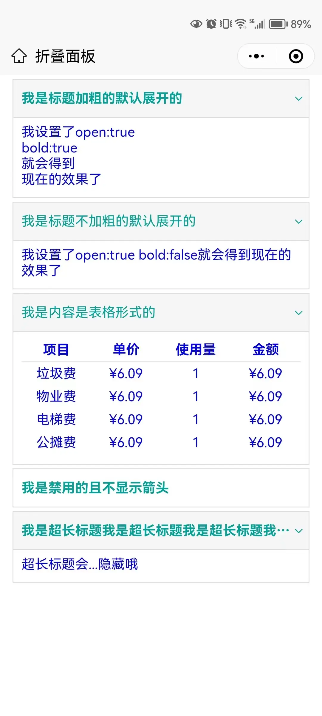这是一个全端通用的折叠面板组件,可以折叠/展开的内容区域,支持复杂的表格形式展示,简单的设置即可实现,节省效率必备。