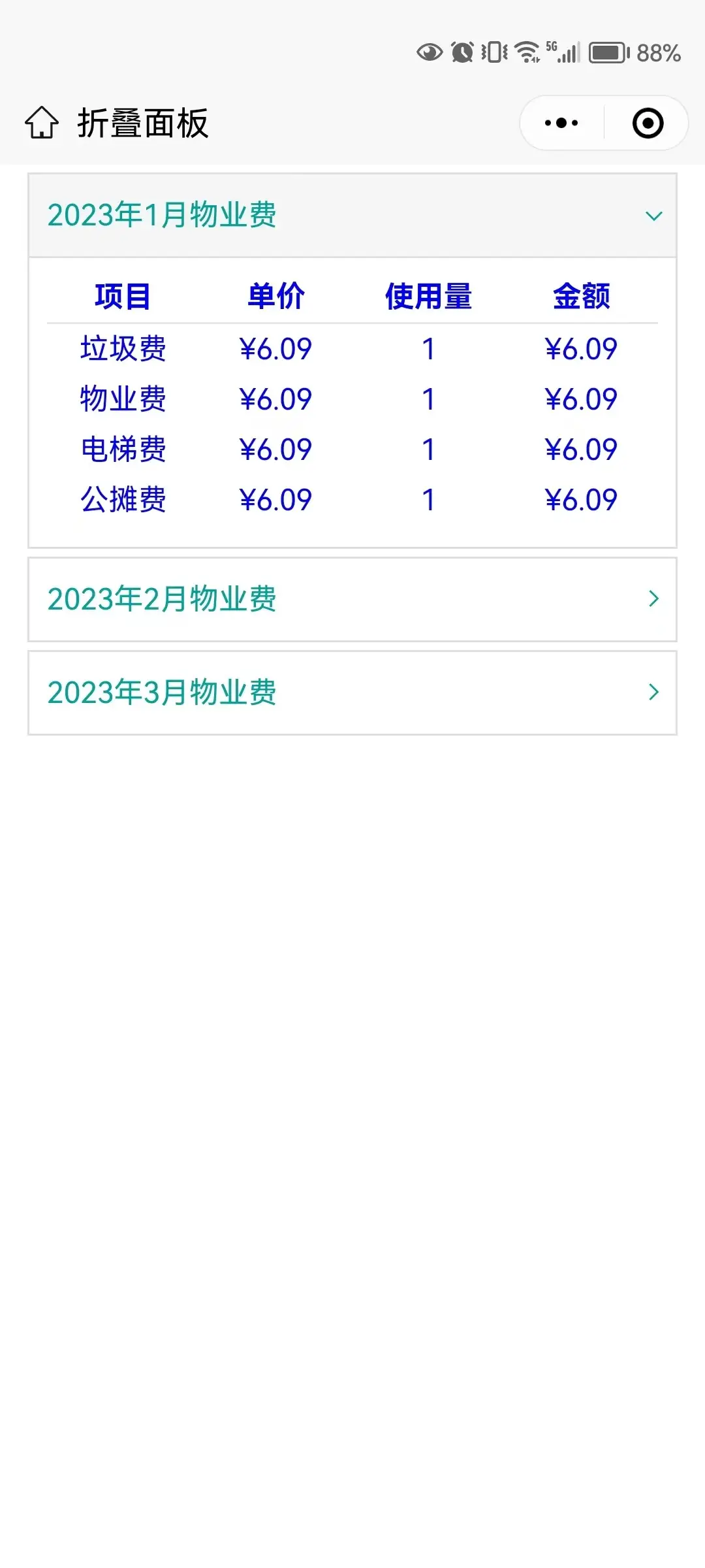 ["垃圾费", "¥6.09", '1', '¥6.09'],