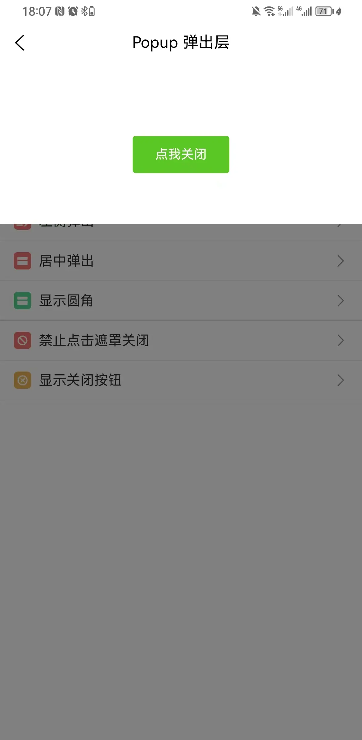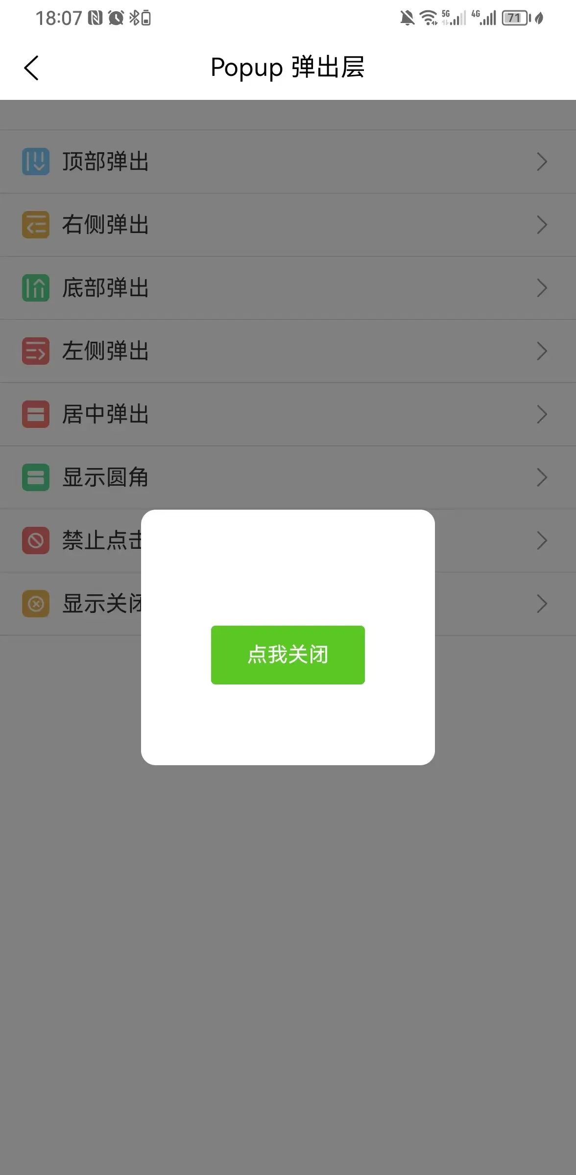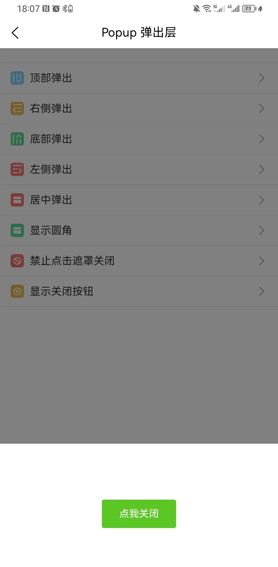 弹出层容器,用于展示弹窗、信息提示等内容,支持上、下、左、右和中部弹出。组件只提供容器,内部内容由用户自定义。