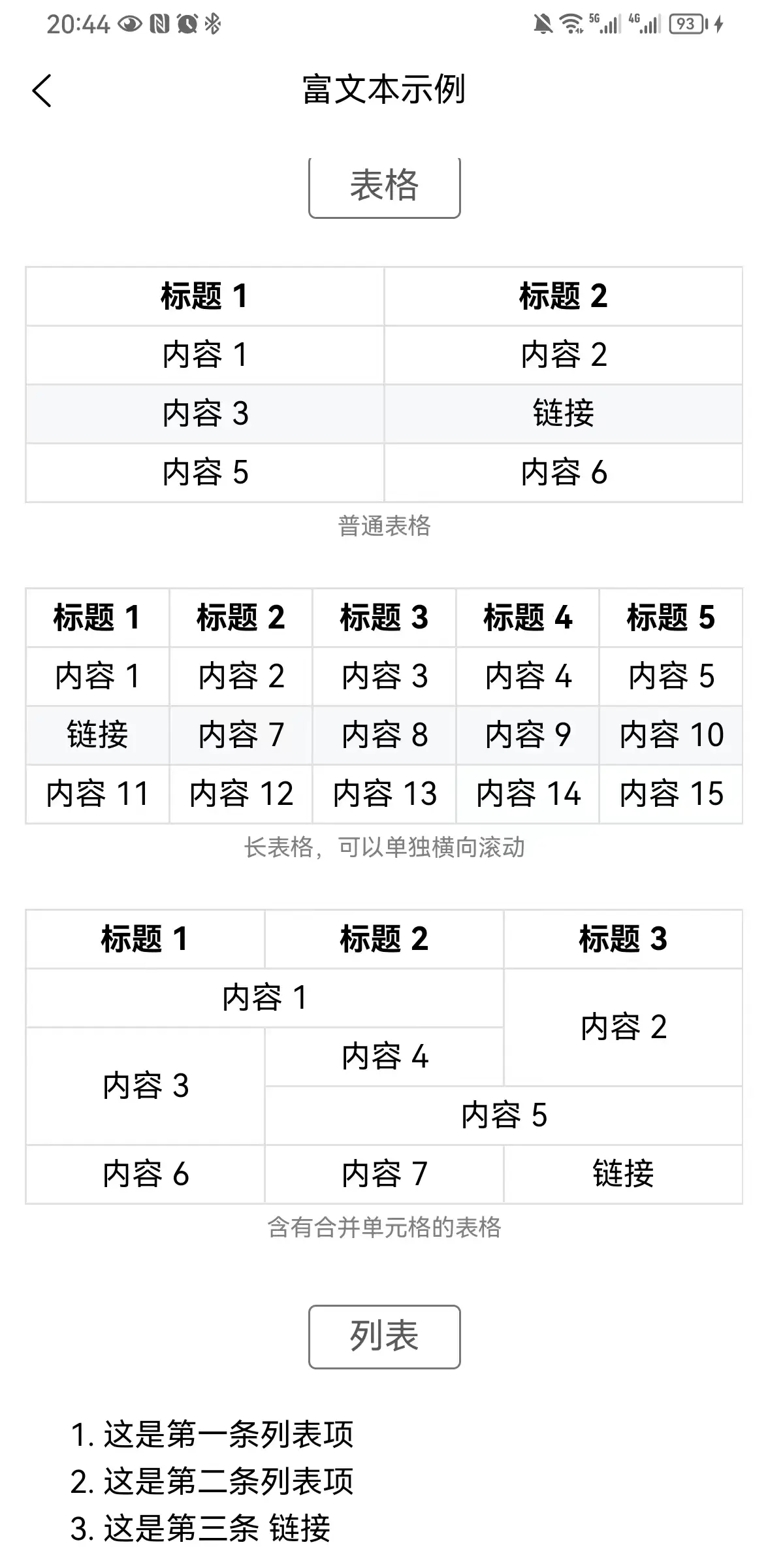 该组件一般用于富文本解析场景,比如解析文章内容,商品详情,带原生HTML标签的各类字符串等,此组件和uni-app官方的rich-text组件功能有重合之处,但是也有不同的地方。