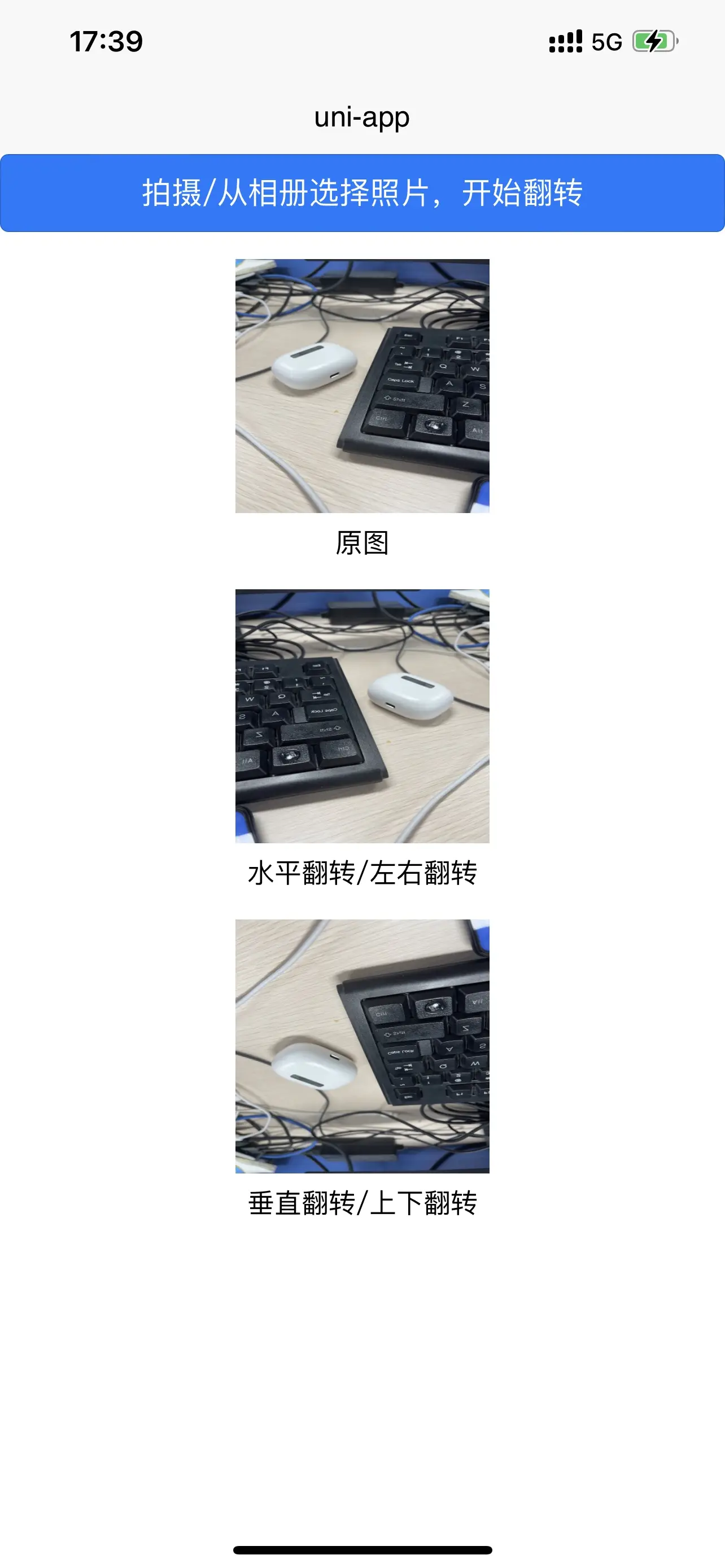 图片照片自拍镜像、水平垂直翻转、左右上下翻转、解决相机拍照和预览画面保持一致(双端)