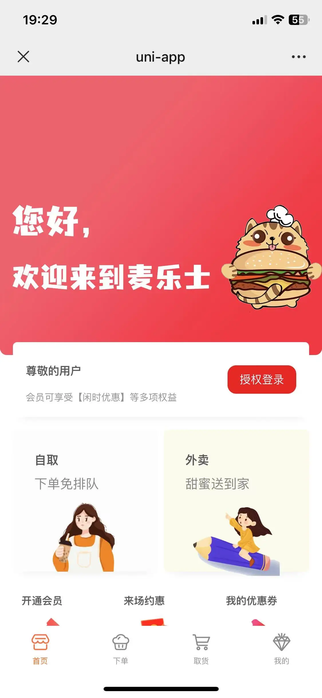 * 外卖&自取 支持商户自送外卖和用户自取购买模式,暂不支持接入美团饿了么