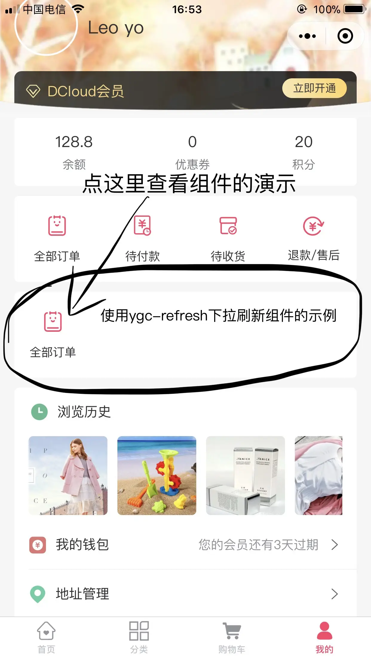 - 上传了新的示例,直接在 MixR 大神的mix-mall电商项目模版里演示ygc-refresh下拉刷新组件。试了iosapp,微信小程序,h5都正常运行。