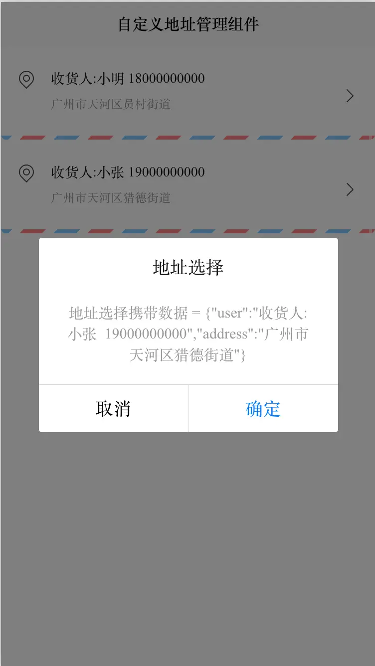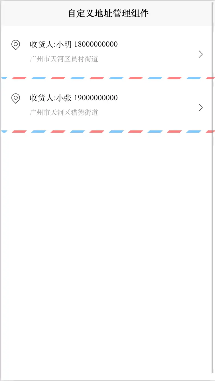 itemTwo:{'user':'收货人:小张 ' ,'address':'广州市天河区猎德街道'},