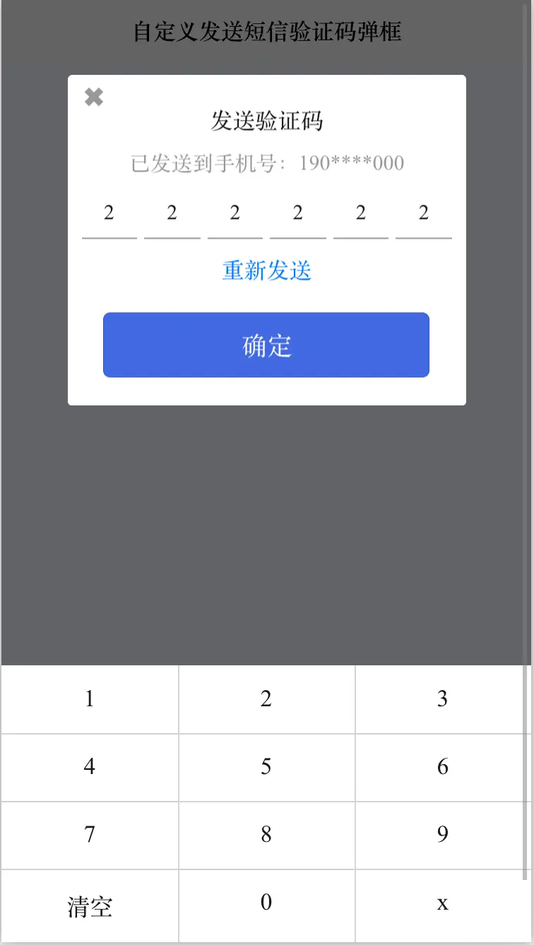 <cc-codeDialog :show="show" phone="1900000000" :autoCountdown="true" :len="6" @closeClick="closeCodeDialog"