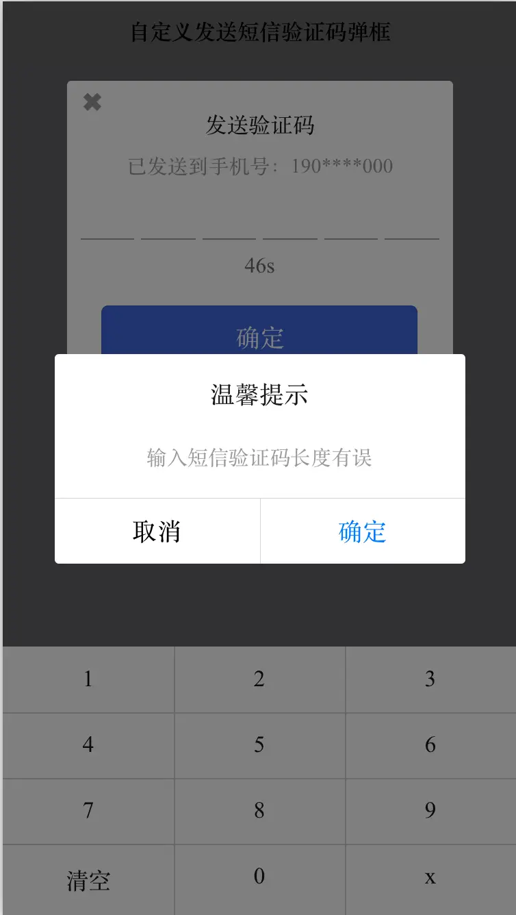 <!-- show:是否显示弹框 phone:手机号 autoCountdown:自动时间秒数 len:短信验证码长度 @closeClick:关闭弹框 @confirmClick:确认弹框 -->