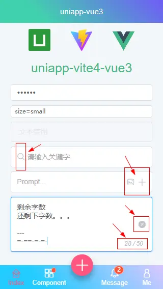 uainput组件是基于uniapp input自定义加强版文本框输入,支持单行/多行输入(type="textarea")、自适应高度、禁用输入、一键清空、密码框、自定义输入框前缀/后缀插槽等功能。