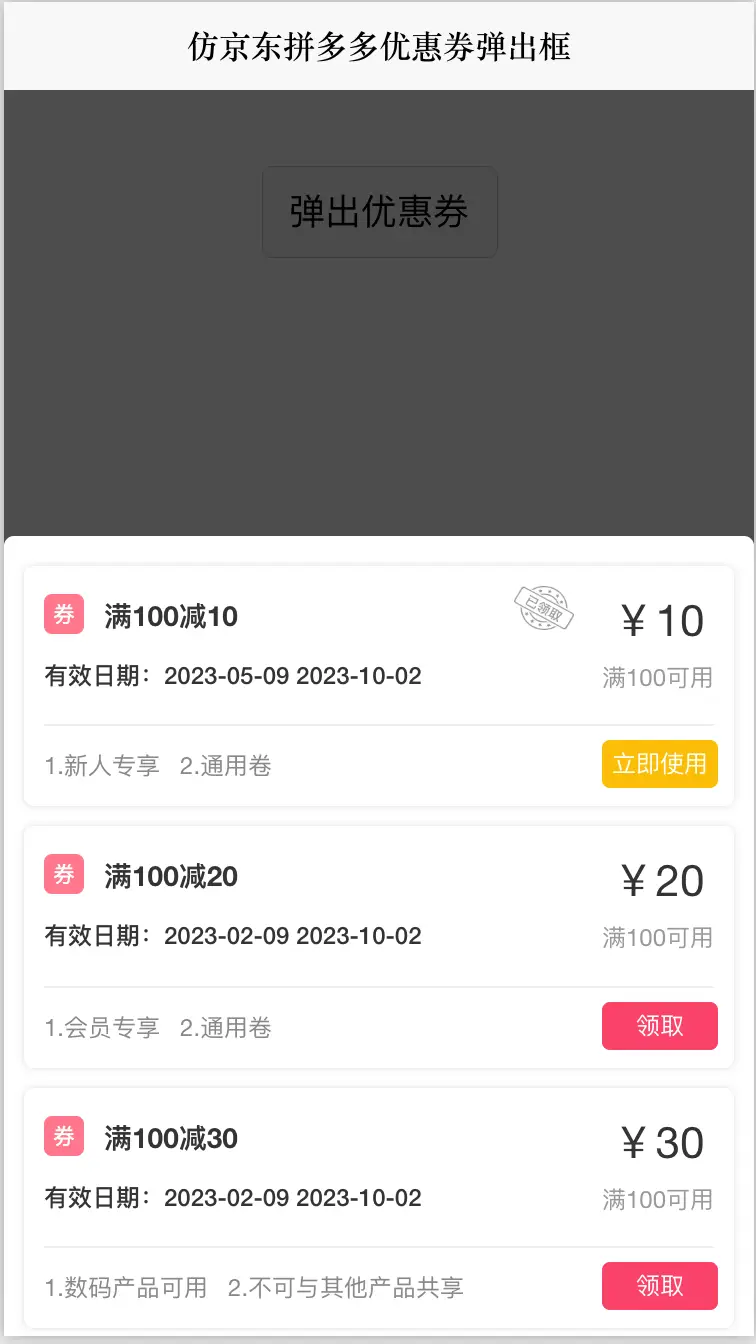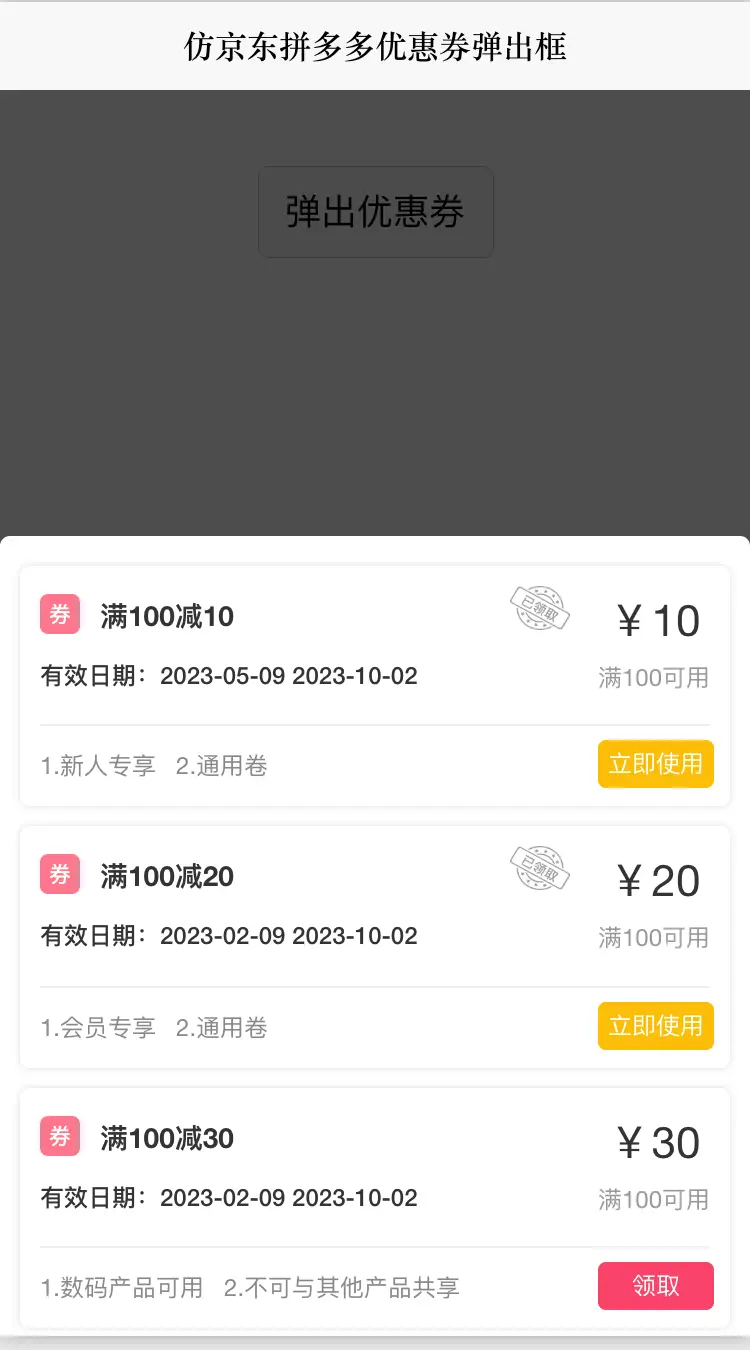 <button style="margin-top: 38px;" @click="opencoupon()">弹出优惠券</button>