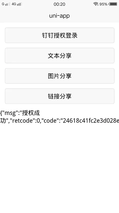 {"msg":"授权成功","retcode":0,"code":"70e2f88b60c13ccbb2482cbda69bfeba"}