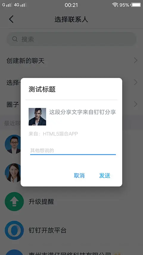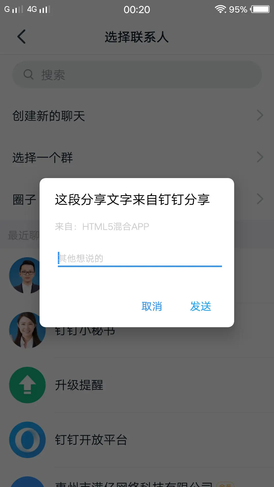 plug.shareText({"content":"这段分享文字来自钉钉分享"},ret=>{