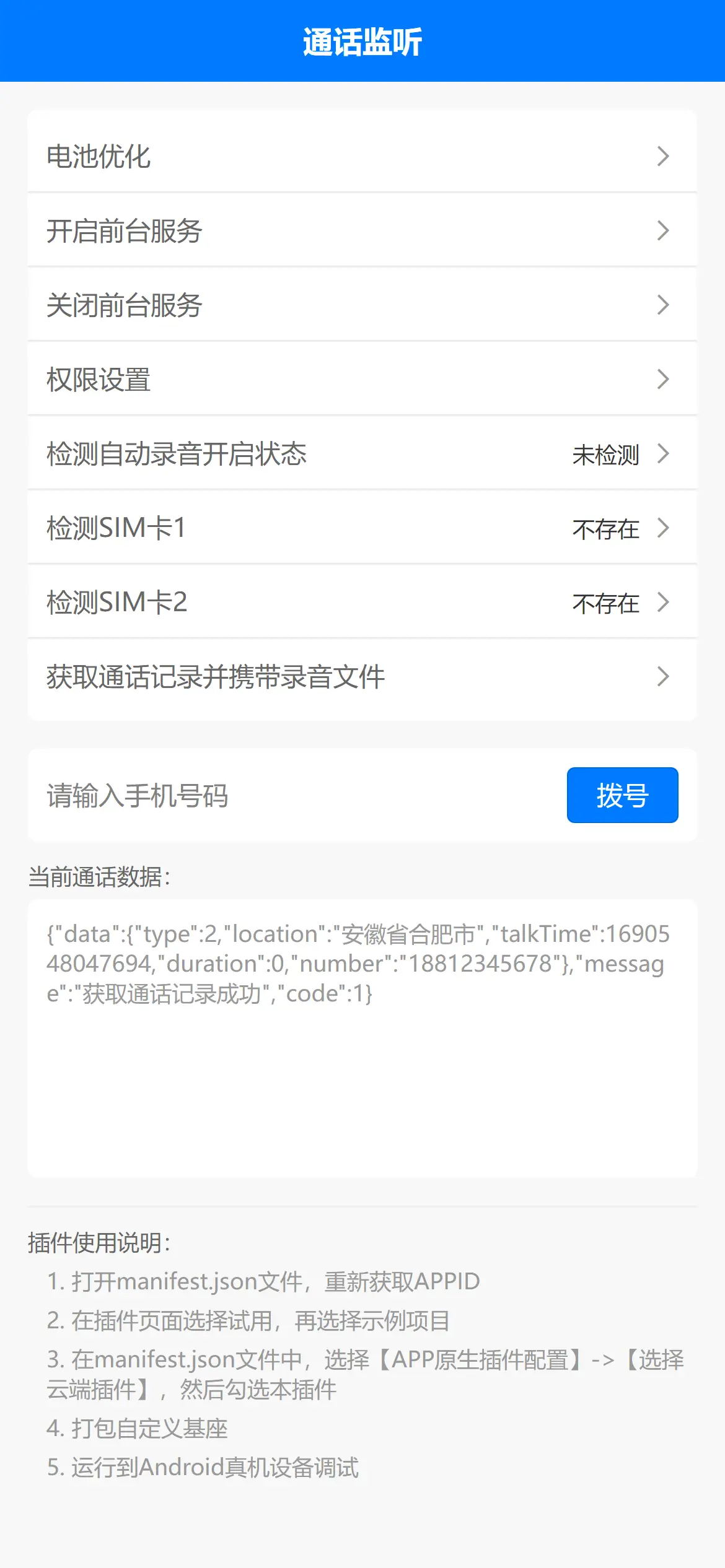 监听通话状态,获取通话记录和录音文件插件使用说明