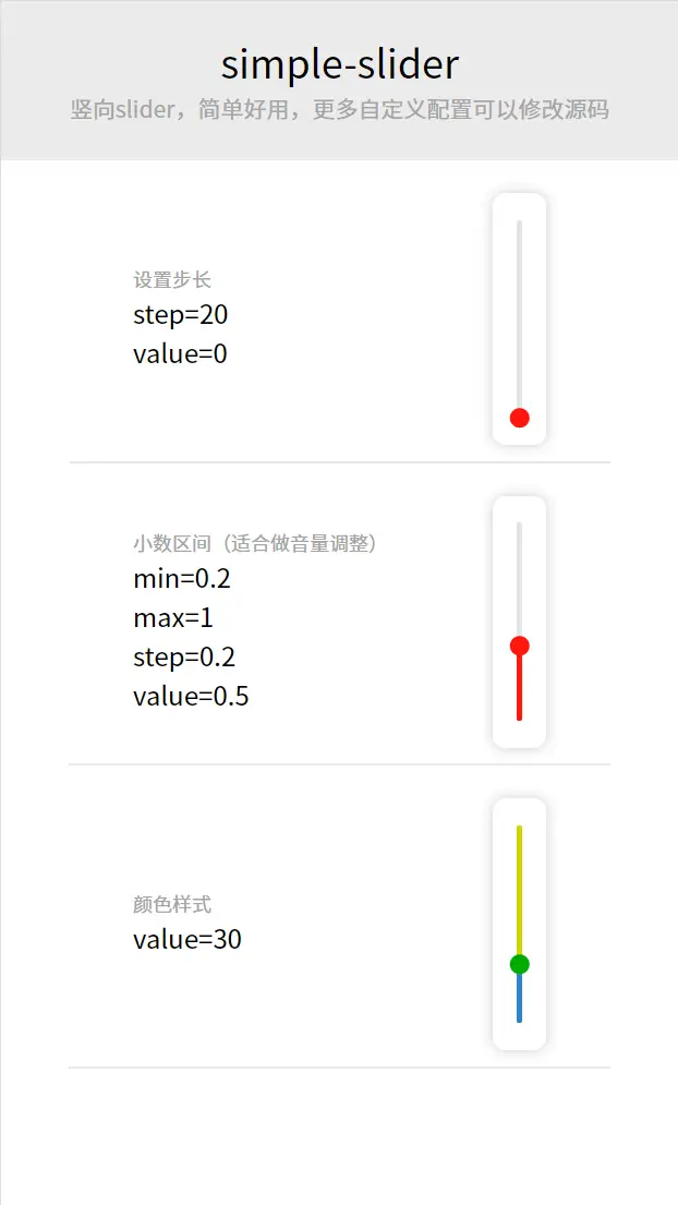 竖向slider,简单好用,更多自定义配置可以修改源码