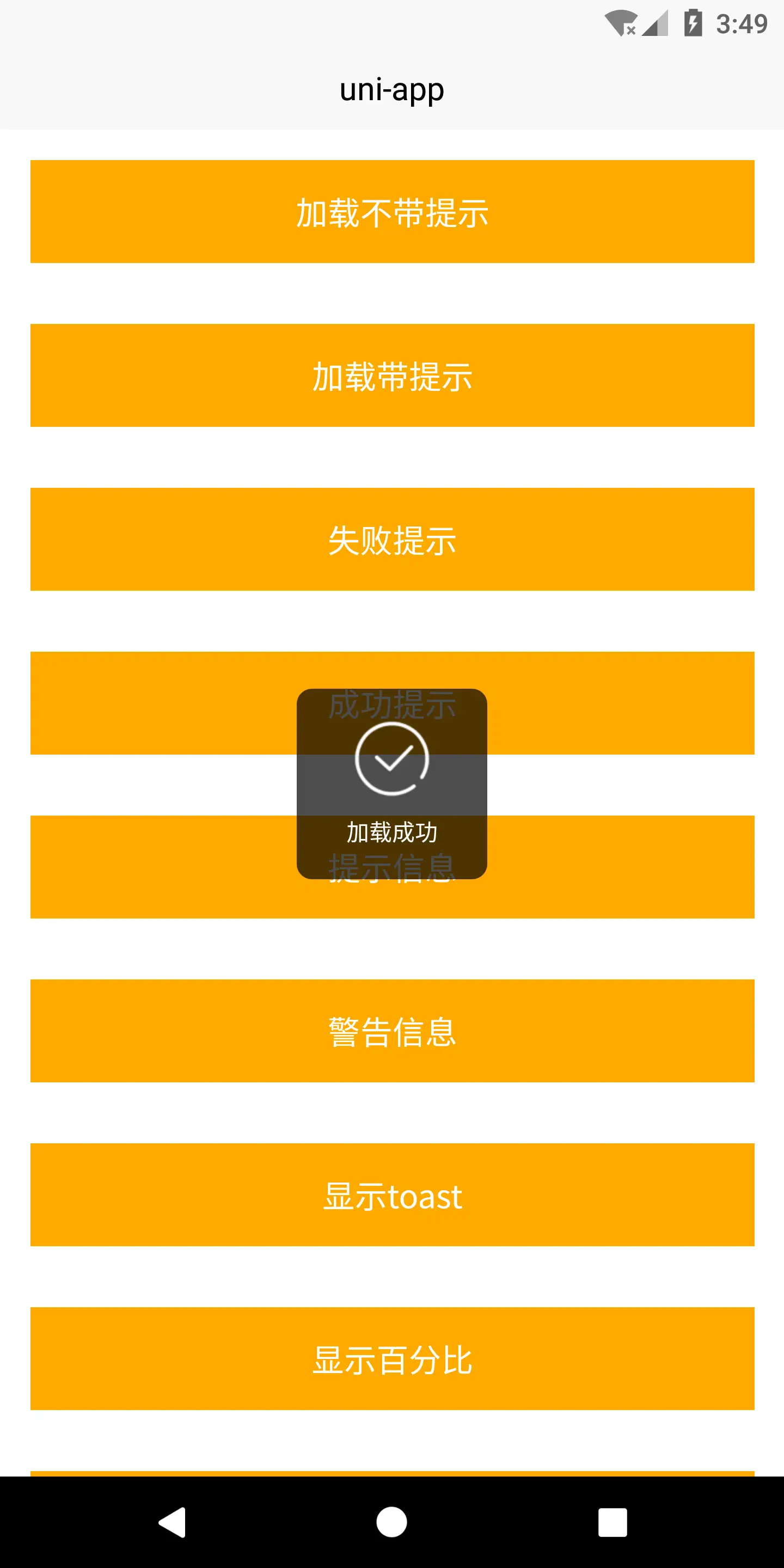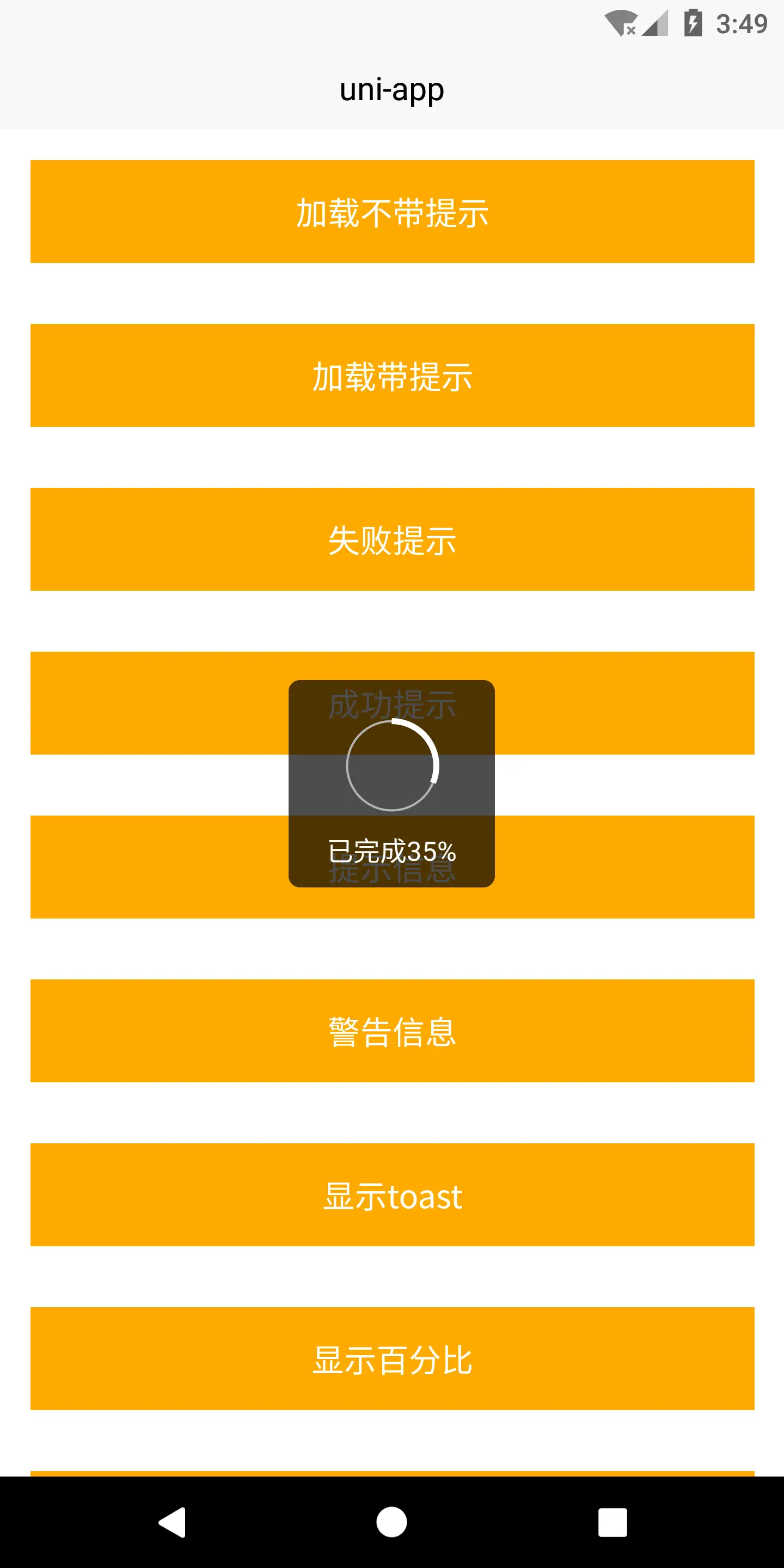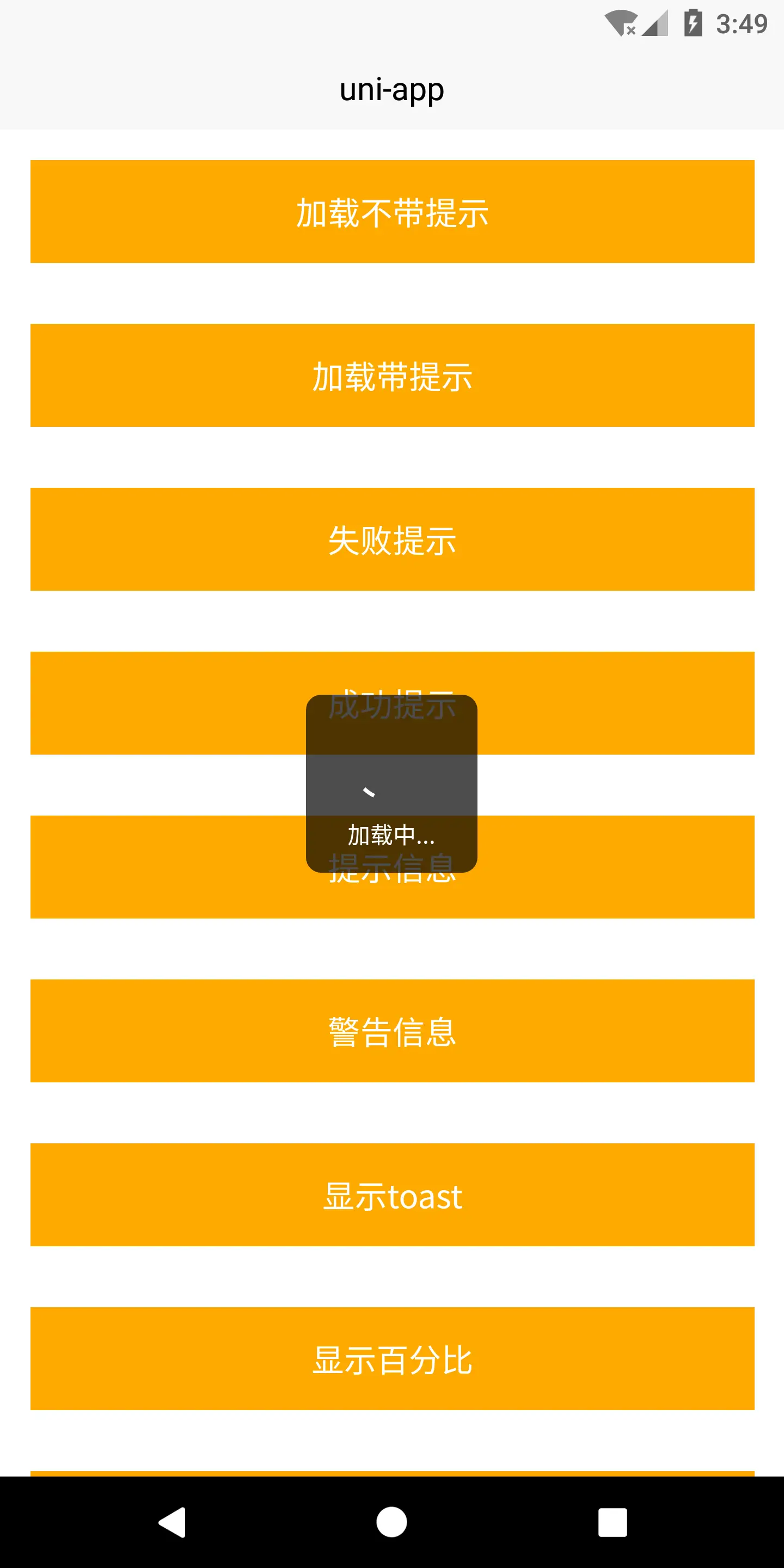 <!--本来是想集成SVProgressHUD,因为我发现uni-app ios sdk有现成的这个包,但是这个包是被一个视频框架所引用的,要用这个框架,必需的添加那个视频框架,我担心你们用的时候麻烦,就放弃了;-->Android端