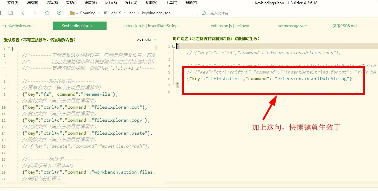 搜了好久这个插入日期时间的功能,一直没有(vscode有现成的,但HBuilderX就是没有),今天花点时间自己做了一个,实测好用